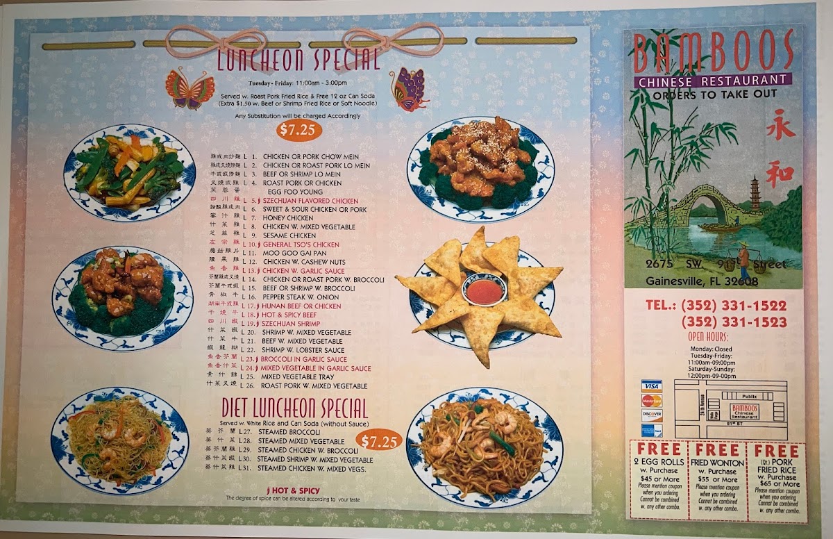 Introducing Bamboos, a charming eatery located in Gainesville, Florida, renowned for its delectable Chinese cuisine and warm hospitality. This hidden gem offers an inviting menu that features an array of flavorful dishes that cater to various preferences.